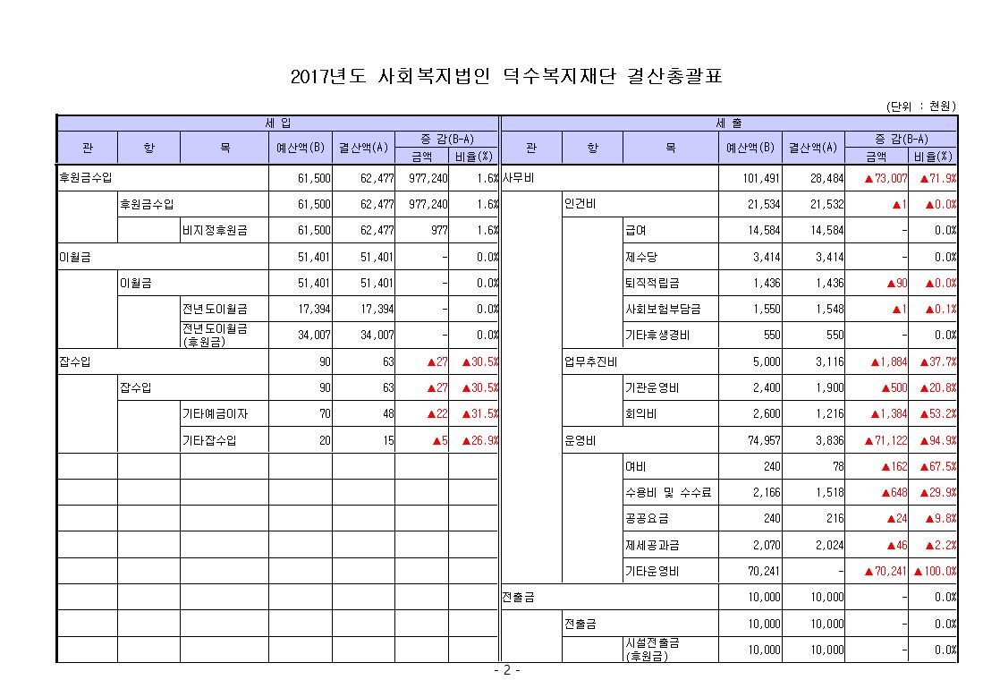 1. 2017³âµµ ´ö¼öº¹ÁöÀç´Ü °á»ê¼ 2. 2017³âµµ ´ö¼öº¹ÁöÀç´Ü ÈÄ¿ø±Ýǰ ¼öÀÔ»ç¿ë°á°úº¸°í |