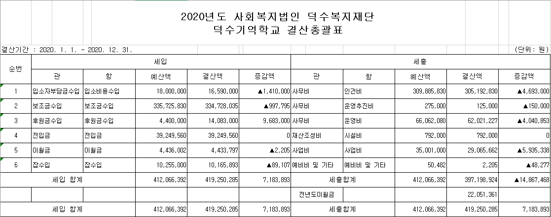 ´ö¼ö±â¾ïÇб³ 2020³âµµ ¼¼ÀÔ¼¼Ãâ °á»êÀ» °ø°íÇÕ´Ï´Ù.