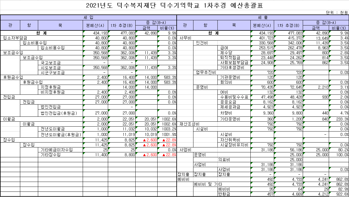 | ´ö¼ö±â¾ïÇб³ 2021³âµµ 1Â÷ Ãß°æ ¿¹»ê¼ °ø°í | |||
