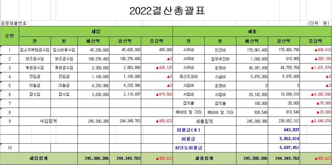 | 2022³â »ç¶û¸¶À» °á»ê ¹× ÈÄ¿ø±Ýǰ ¼öÀÔ¡¤»ç¿ë°á°ú °ø°í | |||