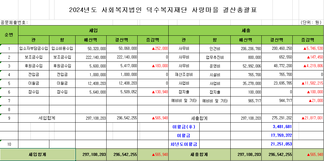 »çȸº¹Áö½Ã¼³ À繫ȸ°è±ÔÄ¢ Á¦10Á¶¿¡ ÀǰÅÇÏ¿© 2024³â ´ö¼öº¹ÁöÀç´Ü »ç¶û¸¶À» °á»ê¼, ÈÄ¿ø±Ýǰ ¼öÀÔ ¹× »ç¿ë°á°ú¸¦ °ø°íÇÕ´Ï´Ù. * °ø°í±â°£: 2025. 3. 27. ~ 2025. 6. 26.(90ÀÏ °£) |