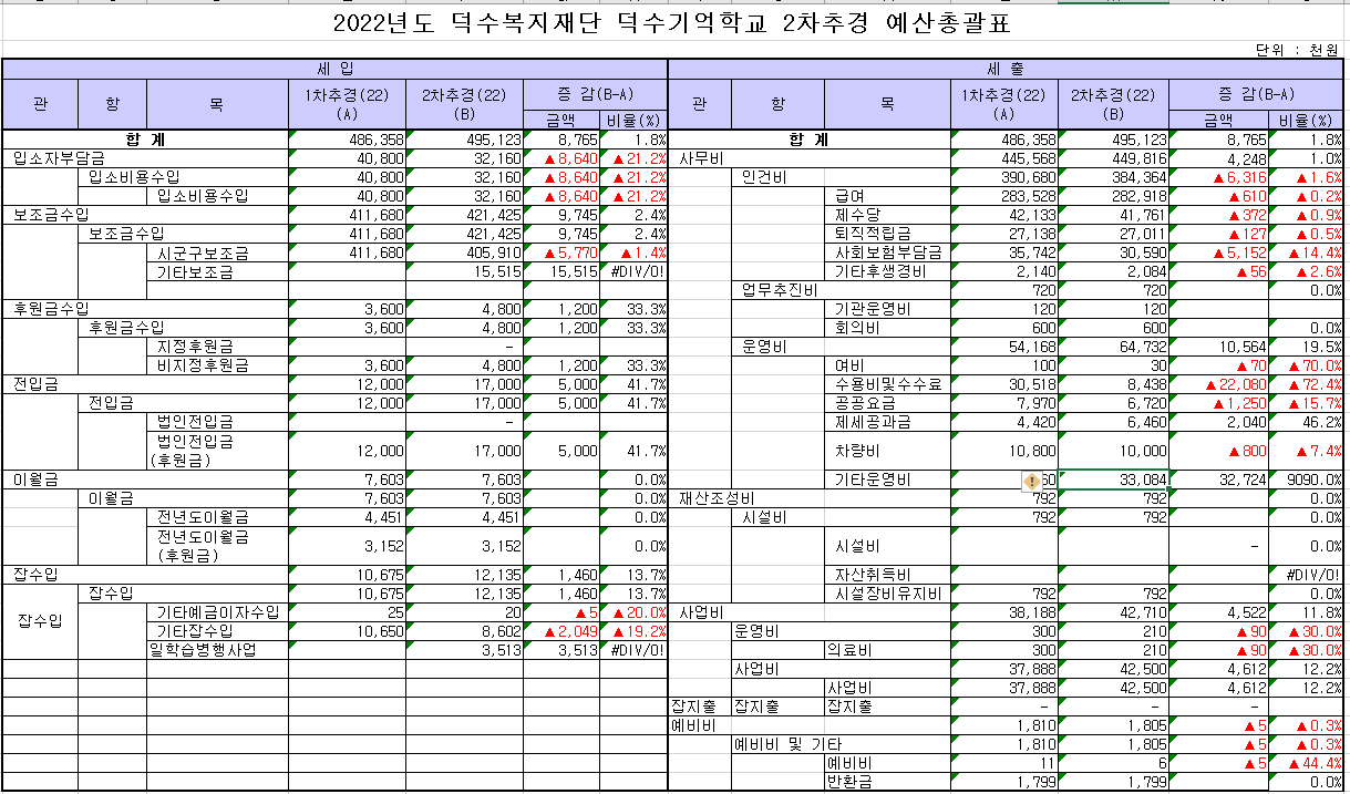| ´ö¼ö±â¾ïÇб³ 2022³â 2Â÷ Ãß°¡°æÁ¤ ¿¹»ê °ø°í | |||