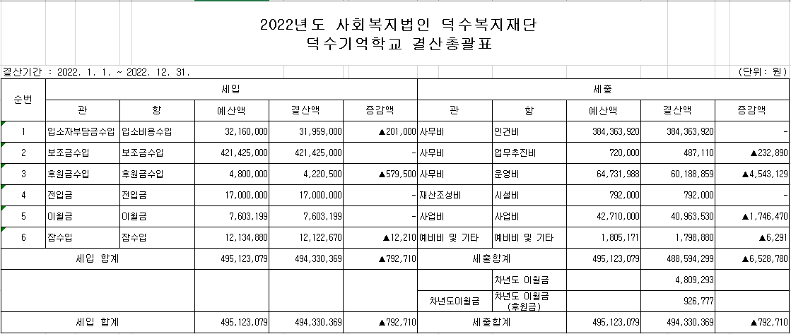 »çȸº¹Áö¹ýÀÎ ´ö¼öº¹ÁöÀç´Ü ´ö¼ö±â¾ïÇб³¿¡¼´Â 2022³â °á»ê¼ ¹× ÈÄ¿ø±Ýǰ ¼öÀÔ ¹× »ç¿ë°á°ú¸¦ °ø°íÇÕ´Ï´Ù. * °ø°í±â°£ : 2023. 03. 28. ~ 2023. 06. 27.(3°³¿ù) |