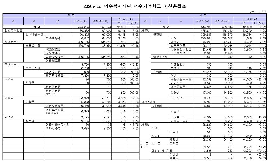 ´ö¼ö±â¾ïÇб³ 2026³â ¿¹»ê¼ °ø°í