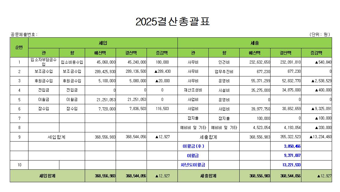 | 2025³â »ç¶û¸¶À» °á»ê¼, ÈÄ¿ø±Ýǰ ¼öÀÔ ¹× »ç¿ë°á°ú °ø°í | |||
