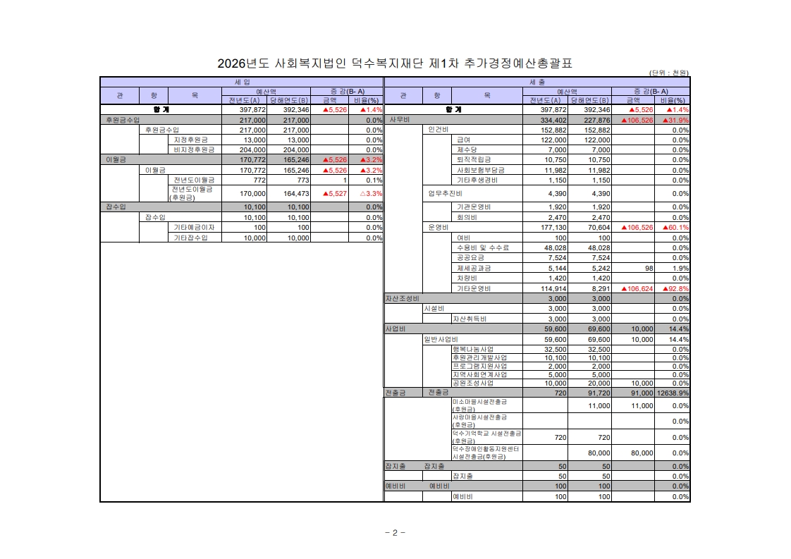 »çȸº¹Áö¹ýÀÎ ´ö¼öº¹ÁöÀç´Ü 2026³âµµ Á¦1Â÷ Ãß°¡°æÁ¤¿¹»ê¼¸¦ °Ô½ÃÇÕ´Ï´Ù. °ø°í±â°£: 2026.4.2~2026.5.3(30ÀÏ) |